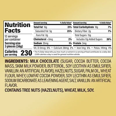 Tempting combination of smooth chocolaty cream surrounding a whole hazelnut within a delicate, crisp wafer all enveloped in milk chocolate and finely chopped hazelnuts