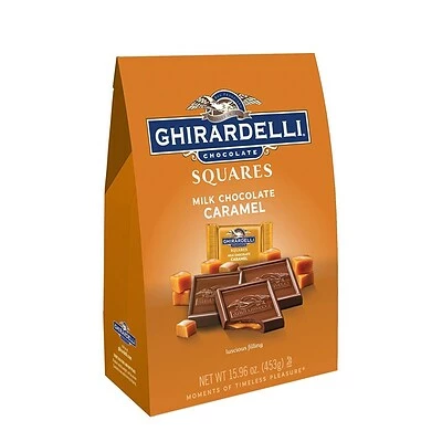 One 15.9 oz. bag of Ghirardelli Squares Milk Chocolate & Caramel.