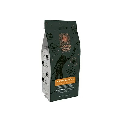 Copper Moon Southern Pecan artificially flavored coffee is a classic blend with flavor characteristics of creamy caramel and nutty pecans reminiscent of homemade pie.