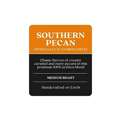 The Copper Moon Coffee Southern Pecan artificially flavored coffee is a classic blend with flavor characteristics of creamy caramel and nutty pecans reminiscent of homemade pie.