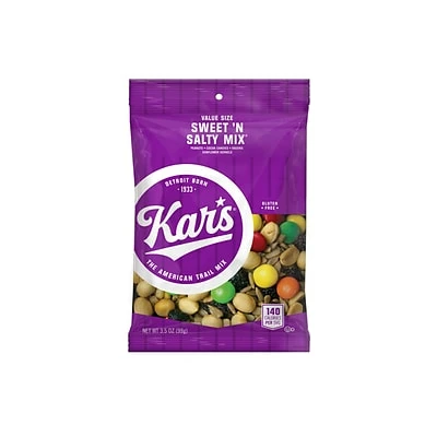 Satisfy the taste buds with this trail mix pack. The sweet and salty variants offer an indulgent treat, while all-energy and raisin almond cashew flavors are unsalted for a healthier option. This Kar’s trail mix assortment pack comes in a box of 18 pouches for lasting supply in a workplace, vending machine or party.