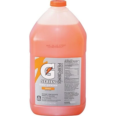 Gatorade® Orange liquid concentrate energy drink in 1 gal jug has carbohydrates and electrolytes that stimulate rapid fluid absorption. Liquid energy drink is easy to make and offers energy to working muscles for improved performance.