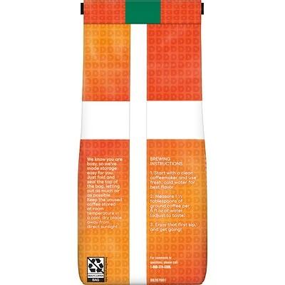 Offer customers, clients and staff a hot, soothing beverage with this decaf coffee. The medium roast delivers full-bodied flavor, and the 100-percent Arabica beans ensure quality with every pot you brew. The beans are already ground for fast, easy preparation. This Dunkin’ coffee is decaffeinated, so you can pour a mug any time you need to take a break from the workday.