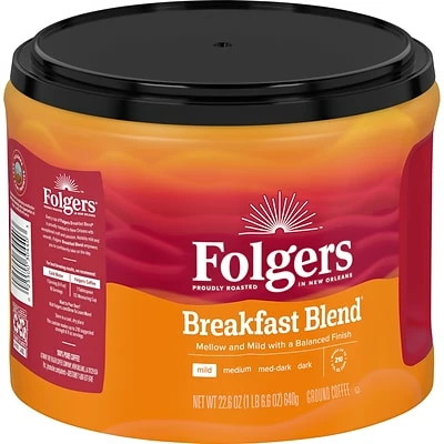 Start your day with Folgers Breakfast Blend coffee, a smooth, mild roast. A select line of exceptional coffee blends carefully crafted by experienced roast masters. Folgers Breakfast Blend delivers smooth and mellow flavor crafted with care. Discover the delightful taste in every cup.