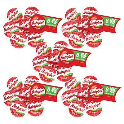 5 bags of Mini Babybel Original Cheese with 6 pieces in each bag for a total of 30 mini cheeses.