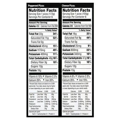 6 Four Cheese and 6 Pepperoni individually wrapped pizzas
