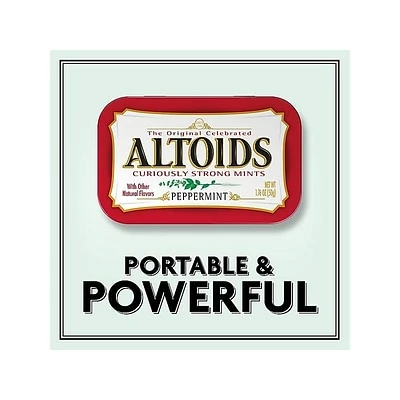 ALTOIDS Curiously Strong Peppermint Mints come in easy to pack, sturdy tins, that keep our cool flavorful mints fresh longer. Perfect for packing in a purse, tossing in a briefcase or throwing in a backpack