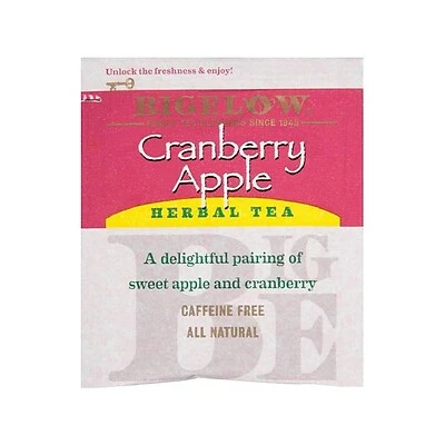 Bigelowยฎ Cranberry Apple Herbal Tea is a delightful pairing of sweet apple and cranberry. We use a special foil pouch to protect your tea from any air, moisture and surrounding aromas.