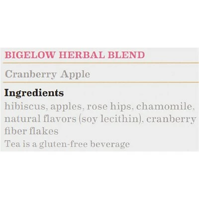 Substitute the daily latte with a steaming cup of herbal tea. Infused with all-natural, non-GMO apples and cranberries, this tea satisfies the sweet tooth while releasing a soothing, pleasant aroma. Bigelow cranberry apple herbal tea is shielded from outside air and moisture in a specially-designed foil pouch, ensuring a fresh, full-flavored cup every time.