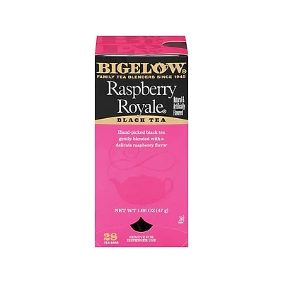 Add a smooth start to the day with this tea. This box of 28 tea bags is ideal for adding some variety to your workplace pantry. Individually foil wrapped, this regular caffeine black tea is an ideal option for a quick sip that invigorates and refreshes. With a smooth and delicate flavor, this Bigelow Raspberry Royale black tea is an excellent addition to any office beverage selection.