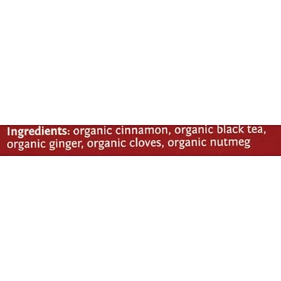 Ingredients: organic cinnamon, organic black tea, organic ginger, organic cloves, organic nutmeg