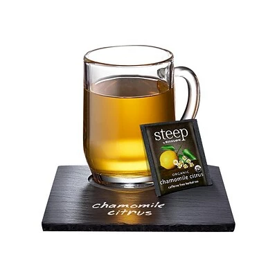 Our natural organic chamomile, blended with a perfect hint of sun-kissed lemon, is a wonderfully sweet and soothing way to unwind any time of day. Steep, take a deep breath and relax.ย The only way to protect our handcrafted recipes is by wrapping each tea bag in our unique foil pouch which ensures 100% freshness in every cup.ย Steep by Bigelow, RCB17707-Organic Chamomile Citrus Caffeine Free Herbal Tea 6/20ct.ย All natural, gluten free, Non GMO, Parve.ย Sweet with rich zesty lemon.ย Full bodied sweet chamomile with bright citrus compliment.