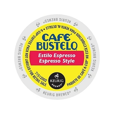 Stock the office coffee station with this Keurig K-Cup Cafe Bustelo espresso coffee 24-pack, and deliver the rich, bold taste of dark-roast beans to clients and staff. These individual coffee pods brew one at a time, cutting down on wasted grounds and eliminating mess around the machine. This smooth, rich Keurig K-Cup Cafe Bustelo espresso coffee 24-pack is excellent served black or with cream and sugar.