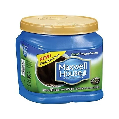 Enjoy a steaming cup while avoiding the crash with this decaffeinated ground coffee. Made from 100 percent Arabica beans, this blend produces a well-rounded body and rich, smooth texture, offering a delicious beverage. This Maxwell House original-roast ground coffee comes with 29.3 ounces to a can, providing up to 240 cups of coffee, making it a great candidate for lobbies, break rooms and other spaces.