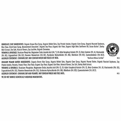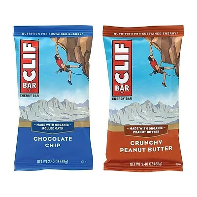 Filled with nutrition for sustained energy, this Clif Bar variety pack contains a variety of delicious Clif Bar flavors for energy on the go! Each box contains 24 individually wrapped energy bars made with organic oats. Enjoy flavors like chocolate chip, crunchy peanut butter, and white chocolate macadamia nut to keep you going while out on a run, on the sideline of your next game, or even to give a boost of energy while stuck in the office. This Clif Bar variety pack is great for on-the-go snacks and comes with 8 each of every delicious flavor! late, cocoa butter, soy lecithin, vanilla extract), organic cane syrup, ClifCrunch (organic oat fiber, apple fiber, inulin [chicory extract], organic milled flaxseed, organic psyllium), organic date paste, organic soy butter (organic roasted soybeans, organic soybean oil, salt), organic sunflower oil, molasses powder, sea salt, natural flavors, cinnamon. Crunchy peanut butter: organic brown rice syrup, ClifPro (soy rice crisp [soy protein isolate, rice flour, barley malt extract], organic soy flour, organic roasted soybeans), organic rolled oats, organic cane syrup, organic peanut butter (organic peanuts, salt), peanut flour, peanut, ClifCrunch (apple fiber, organic oat fiber, inulin [chicory extract], organic milled flaxseed, organic psyllium), organic d ate paste, natural flavors, sea salt. White chocolate macadamia nut: organic brown rice syrup, ClifPro (soy rice crisp [soy protein isolate, rice flour, barley malt extract], organic soy flour, organic roasted soybeans), organic rolled oats, soy white chocolate (dried cane syrup, cocoa butter, soy flour, soy lecithin, organic vanilla extract), macadamia nuts, organic cane syrup (organic oat fiber, inulin [chicory extract], organic oat bran, organic psyllium), organic soy butter (organic roasted soybeans, organic soybean oil, salt), organic date paste, natural flavors, sea salt, natural vitamin E