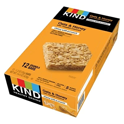 Stave off late afternoon hunger pangs with this 12-pack of granola bars. Combining the chewy texture of oats and honey with the crunch of toasted coconut, these KIND baked granola bars are gluten-free and all-natural, making them a healthy snack choice.