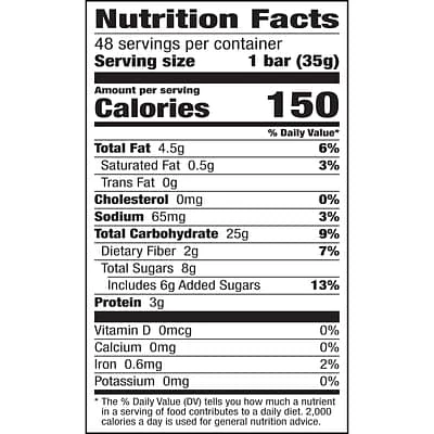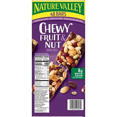 Enjoy the fruity, nutty flavor of these chewy granola bars. They’re individually wrapped for a treat you can grab quickly, and the 8 grams of whole grains per serving provide long-lasting hunger suppression. These 48 Nature Valley granola bars weigh in at 1.2 ounces per package for snack-size munching.