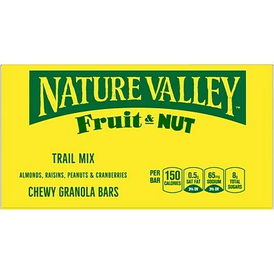 Keep your break room or pantry stocked with healthy and hearty snacks with this box of trail-mix granola bars. These bars are made from all-natural ingredients for a guilt-free snack option. This box of 16 Nature Valley trail-mix granola bars offers an easy way to keep your classroom or break room supplied.