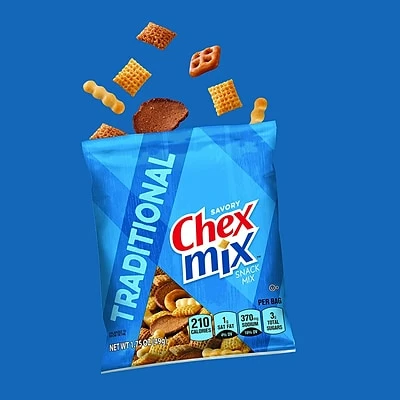 Chex Mix® Chex mix includes Chex breakfast cereal as a major component. Chex mix in traditional flavor comes under salty category, sold as 60 bags per box.