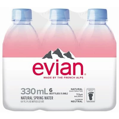 This personal sized bottle of Evian natural spring water is ideal for instant refreshment anytime, the perfect size to slip in your backpack, bag or purse. Fresh natural spring water bottled at the source in the French Alps. Recyclable plastic bottles.Our natural spring water from the French Alps has a balanced mineral composition and naturally occurring electrolytes that give it a distinctive, smooth taste that’s refreshing, rehydrating & delicious either cold or at room temperature. Evian. Live young. Crafted by nature, Evian natural spring water begins as snowflakes and mountain rain, which are naturally filtered through glacial rocks for over 15 years, giving Evian its purity, mineral content & neutrally balanced 7.2 pH & giving you a refreshing drink