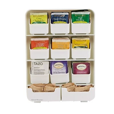 9 drawers for all your favorite tea bag flavors, Each drawer holds up to 15 tea bags