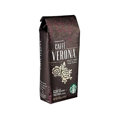 Savor a steaming hot cup with this whole-bean coffee. Featuring a dark cocoa texture and bold, rich taste, this roast is a great candidate to give your day a jump start. This Starbucks Caffe Verona coffee comes in a 16-ounce bag, and you can pair it with dark chocolate to really bring out the flavor.